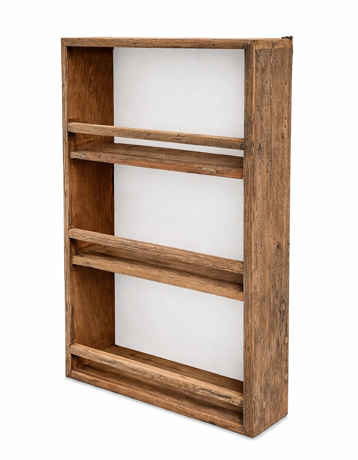 Vi tror på genbrug. Hylden er lavet i genbrugt og gammelt træ. Træet indsamles og kommer ofte fra gamle huse, stilladser og gamle skibe. Nu får det smukke gamle træ nyt liv her hos os i form af en hylde. Hylden kan være lavet af forskellige træsorter, da der er tale om gammelt indsamlet træ. Alle er dog sorter af hårdt træ.
